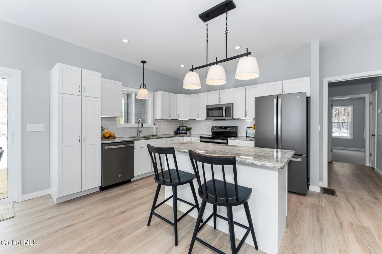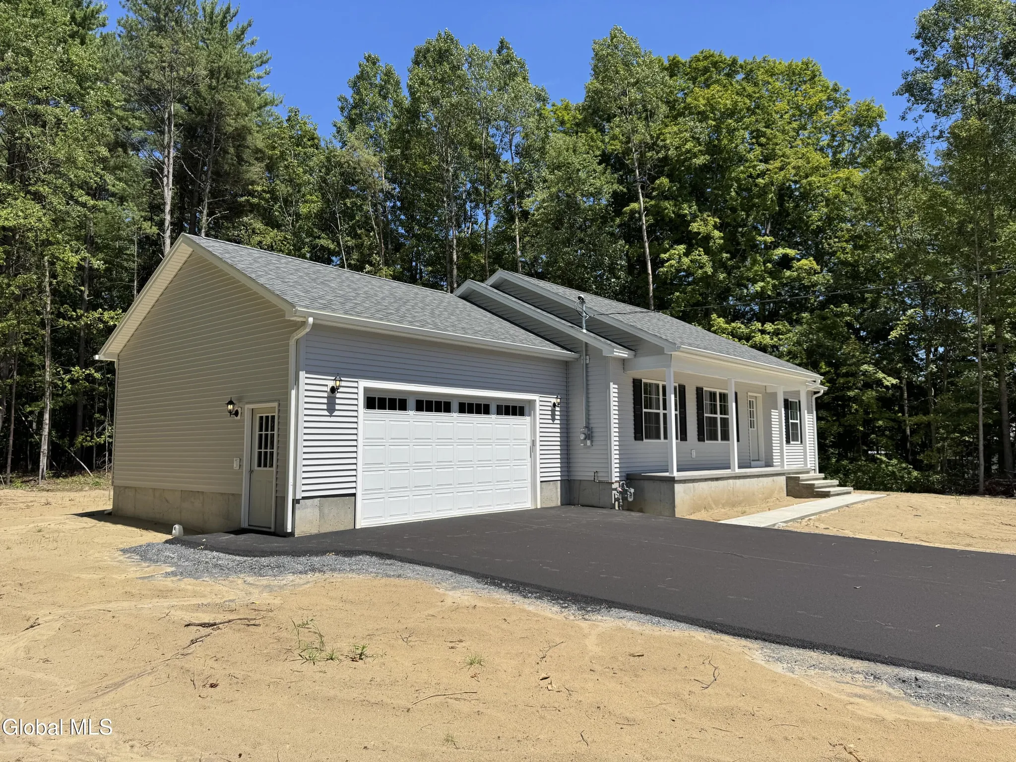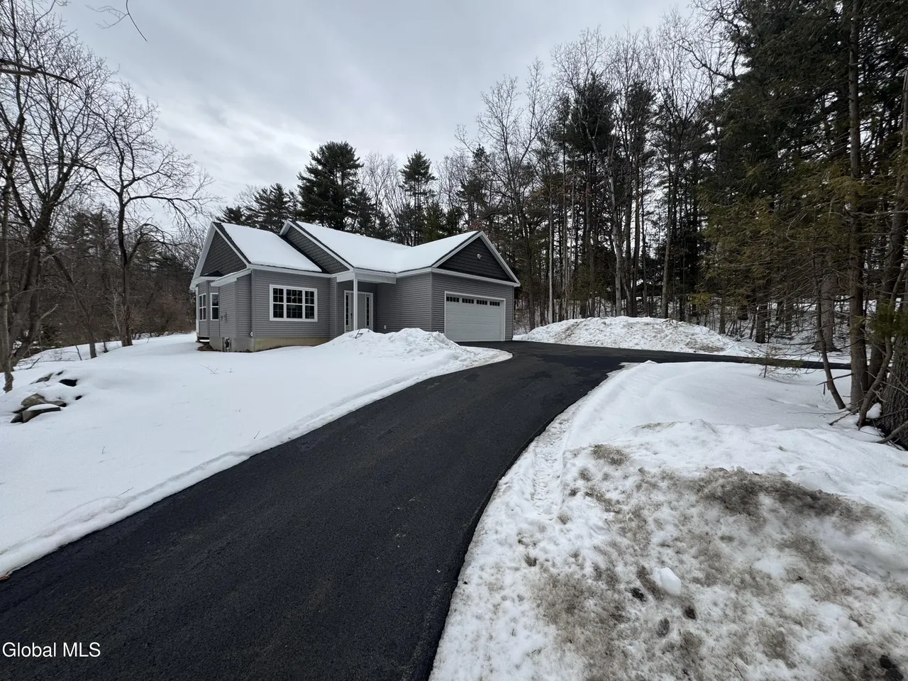 New construct home coming SPRING 2026! This quaint ranch-style home offers ease of maintenance in a efficient one-level layout. Situated on a quiet dead end street in the Town of Queensbury, offering privacy and convenient access to I-87, West Mountain, downtown Glens Falls and more. Features include a covered front stoop, rear pressure treated deck, LVT flooring, cathedral ceiling in the great room and kitchen, custom cabinetry, granite countertops, upgraded appliances, central air, and so much more. Photos shown are of similar home constructed by same Builder.